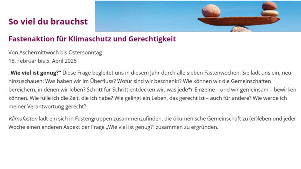 Fastenaktion für Klimaschutz und Gerechtigkeit